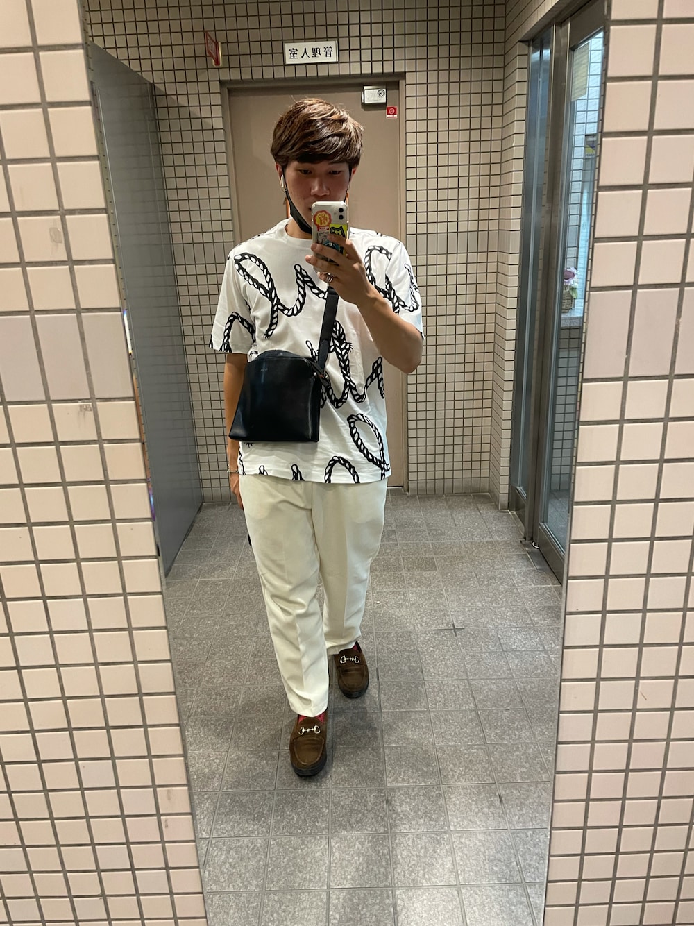 ホワイトコーデ 外しでブラウン頭と足元です!笑