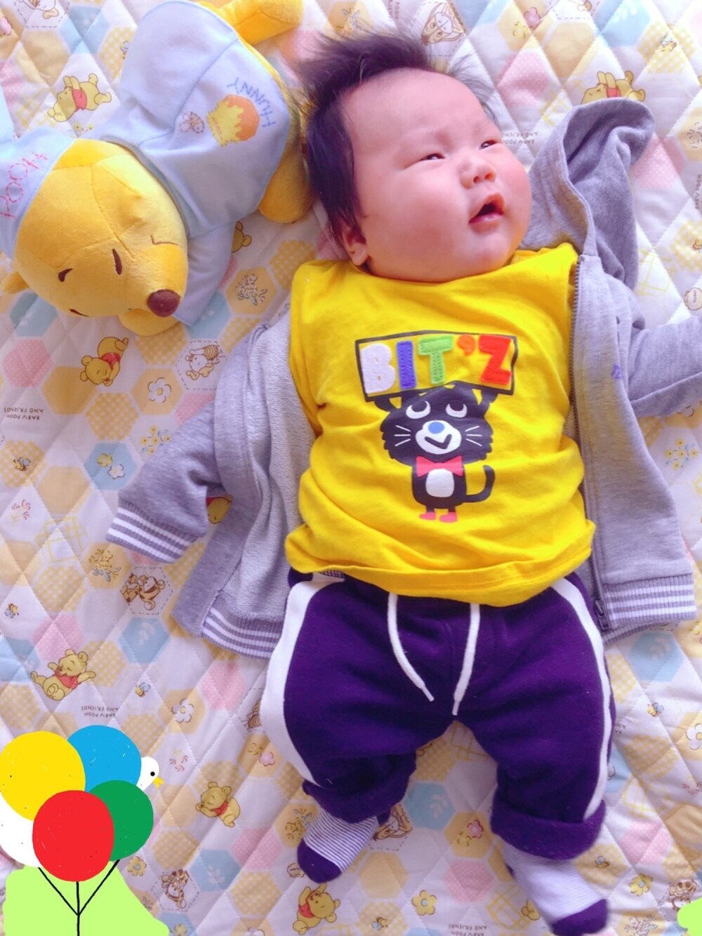 ころりん。 なんと2ヶ月で、80cmのTシャツを着れるようになりました。むっちり。