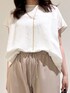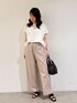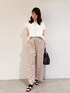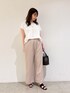 身長:168cm 骨格:ウェーブ 普段のサイズ:トップス 38/ボトムス38 【カットソー】 着用サイズ:F ✦サイズ感・デザイン 大きめなシルエットで裾の絞りを調節できるので、すっきり見えもします。涼しく夏におすすめな一着。 ✦着心地・生地感 ややハリ感のある素材で半袖くらいの丈感。柔らかく薄い素材なので風を通しやすいです。 【パンツ】 着用サイズ:38 ✦サイズ感・デザイン ウエストゴムで着脱しやすくややサイズは大きめに感じます。丈もやや長めです。 ✦着心地・生地感 程よいハリ感があるシルエット。ワイド感のあるパンツで接触冷感なので涼しく使いやすいです。