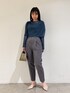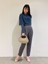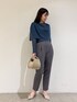 身長:168cm 骨格:ウェーブ 普段のサイズ:トップス 38/ボトムス38 【ニット】 着用サイズ:F ✦サイズ感・デザイン ジャストなサイズ感のトップスに同素材のスヌードがアクセントになるデザイン。リブニットなのですっきりとした女性らしい印象に。 ✦着心地・生地感 シアー感のある薄手のニットなので、これから秋に向けて使いやすい一着です。重ね着もしやすいので冬まで使いやすいアイテム。 【パンツ】 着用サイズ:40 ✦サイズ感・デザイン 程よいフィット感があり、透け感や響きも気にならず使いやすいアイテムです。腰回りやお尻にかけてゆとりのあるサイズ感です。 ✦着心地・生地感 やや厚手のしっかりとした生地感。透け感や下着の響きも感じづらくウエスト位置も高いのですっきり着用できます。