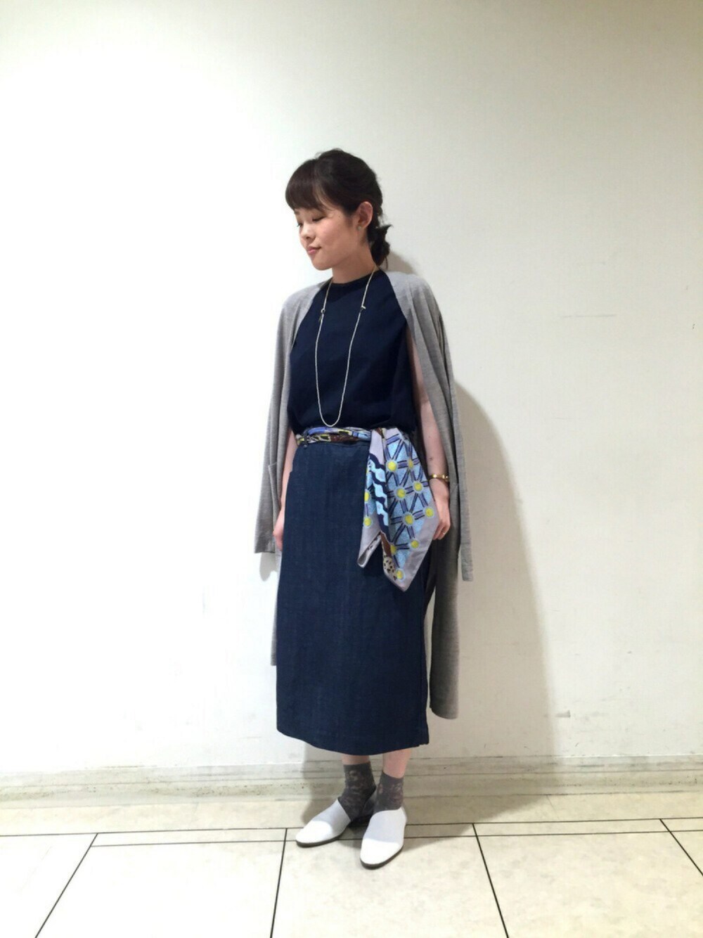 新作のスカートはカタログの時から 狙っていました、、、! タイトすぎない、すっきりとした スカートは初挑戦です。 ウォッシャブルウールのカーディガンも ここまで長いと軽いコート感覚でも 使えるなぁ、、と。 重ね着の楽しい秋物入荷の季節になってきました♪