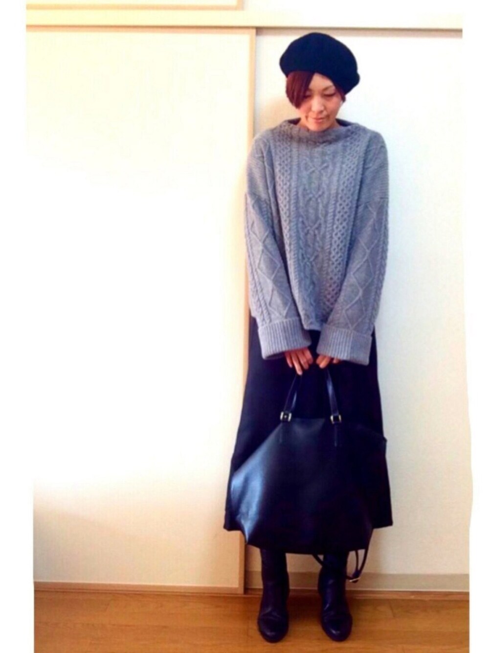 こんにちは😊 お久し振りになっちゃいました😅 今日はお気に入りニットのコーデ✨ 程よい厚みで、今日くらいの気候には丁度いいです💕 ニット以外は黒で統一です😎 ではでは🐰