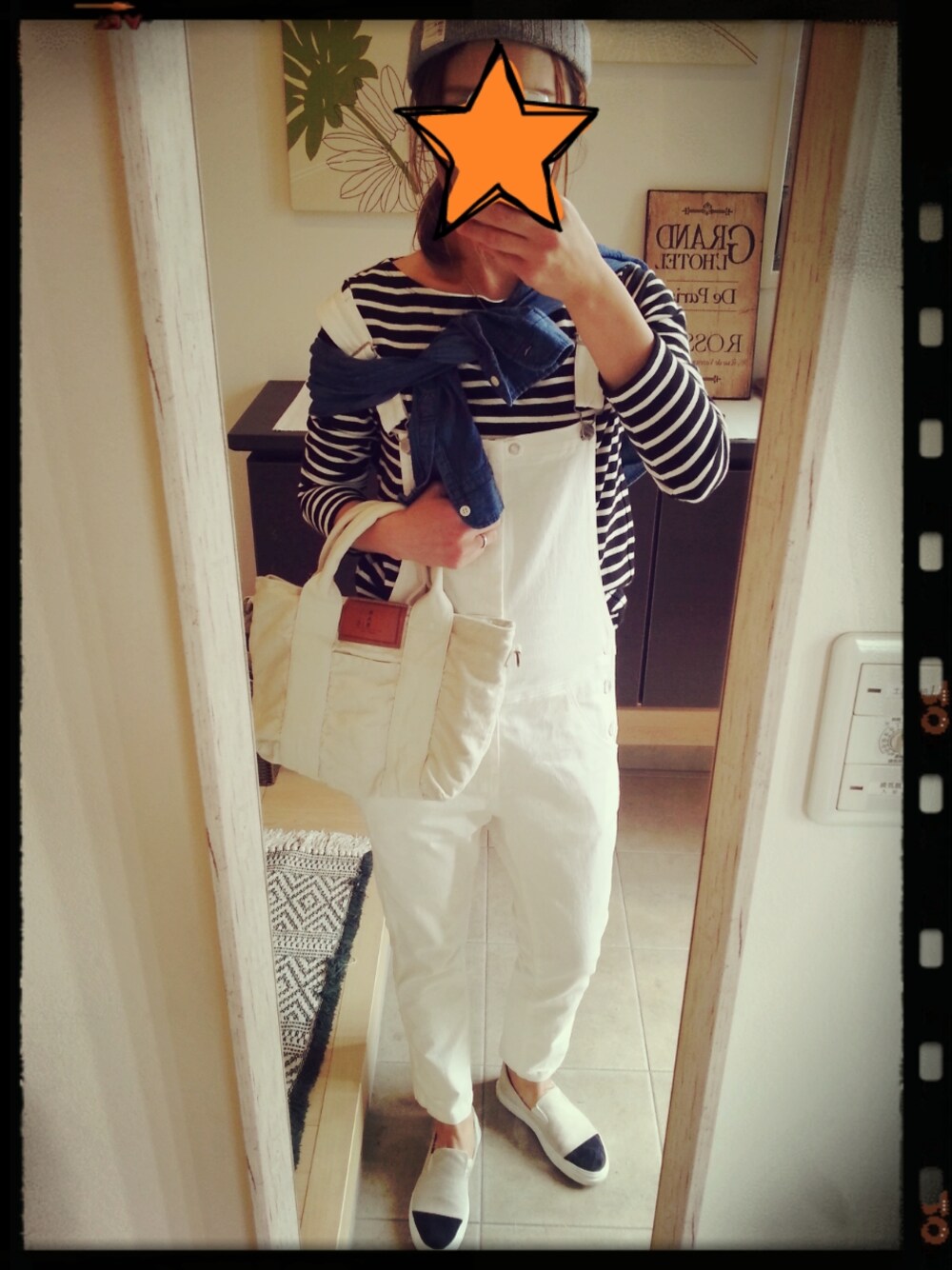 サロペット munich ボーダーTシャツ UNIQLO デニムシャツ SEVENDAYS=SUNDAY