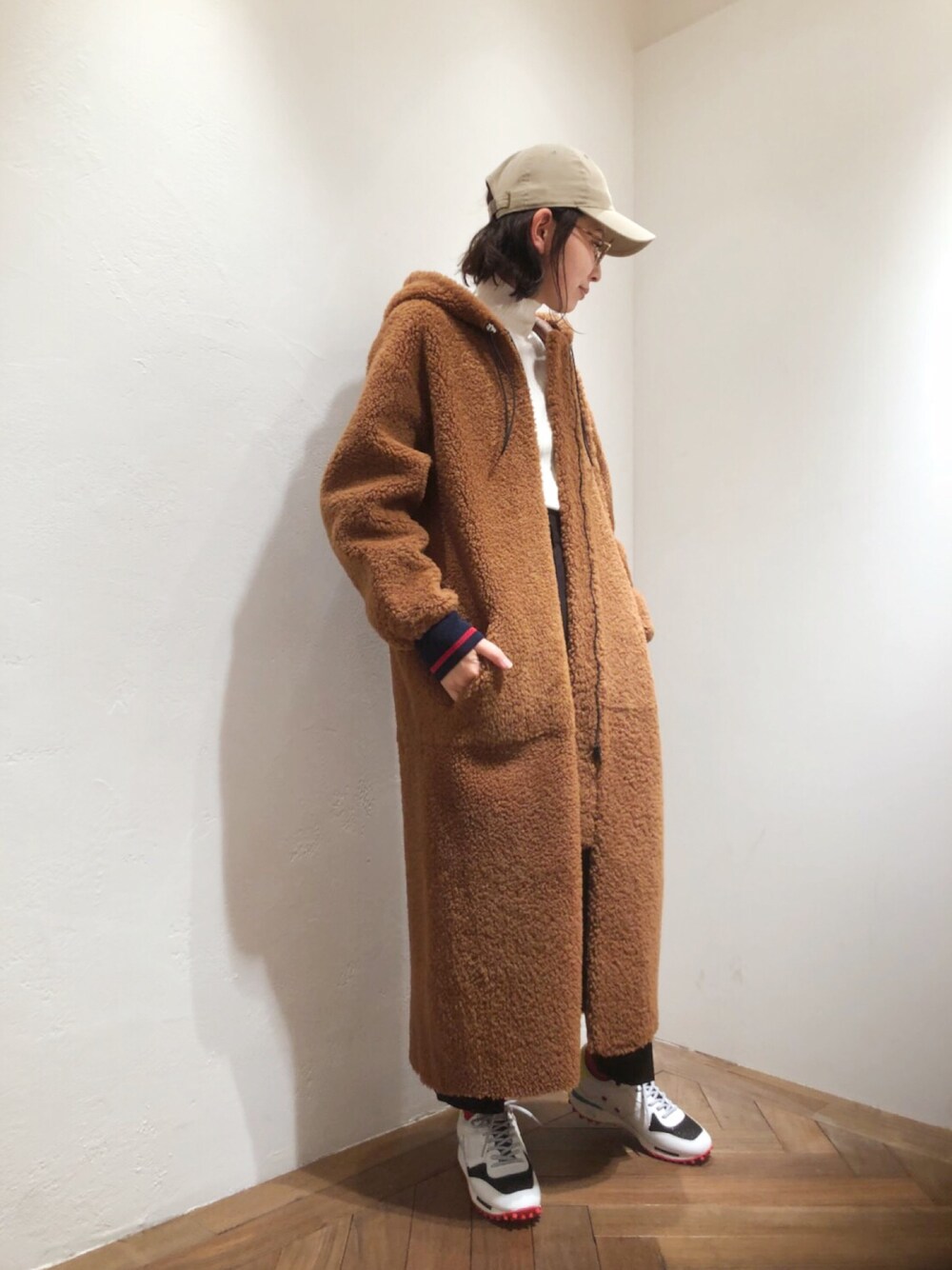 ラグジュアリーになりすぎない、カジュアルに着れる最上級ムートンコート🙆✨やはり、暖かさが違う🤔✨ブーツスタイルもいいけど、スニーカーで👟💕
