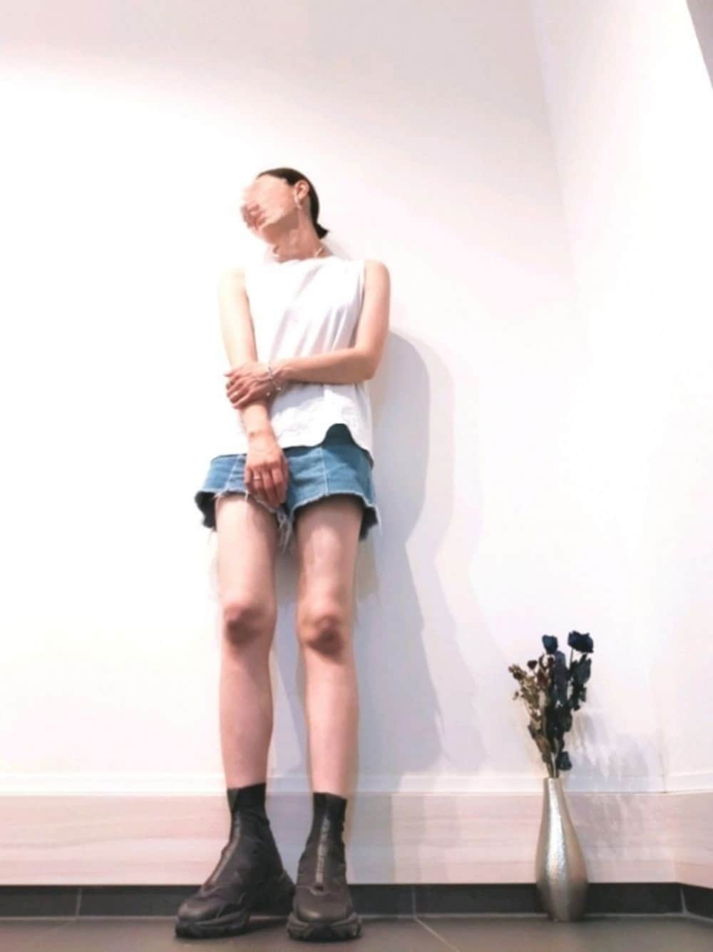 今日は朝からムシムシと暑かったので、ノースリーブに久々に膝上のデニムでコーデしてみました! ハイカットスニーカーで少しだけ、露出カバーできたかな‥(笑)