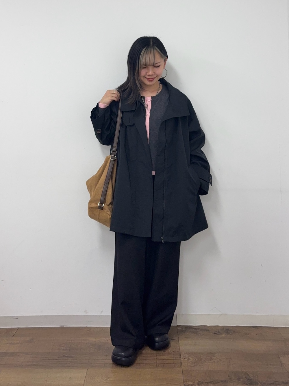 コーデをご覧いただきありがとうございます ☺︎ デイリーでもオフィスシーンでも大活躍するAラインコートを使ったコーデ🖤 スタンドタイプなので防寒性も抜群! ミディアム丈なので気になる腰回りをカバーできるのもポイント◎ 【outer】着用サイズ:FREE 【tops】着用サイズ:FREE 【bottom】着用サイズ:PXS 【bag】着用サイズ:FREE 【shoes】着用サイズ:M