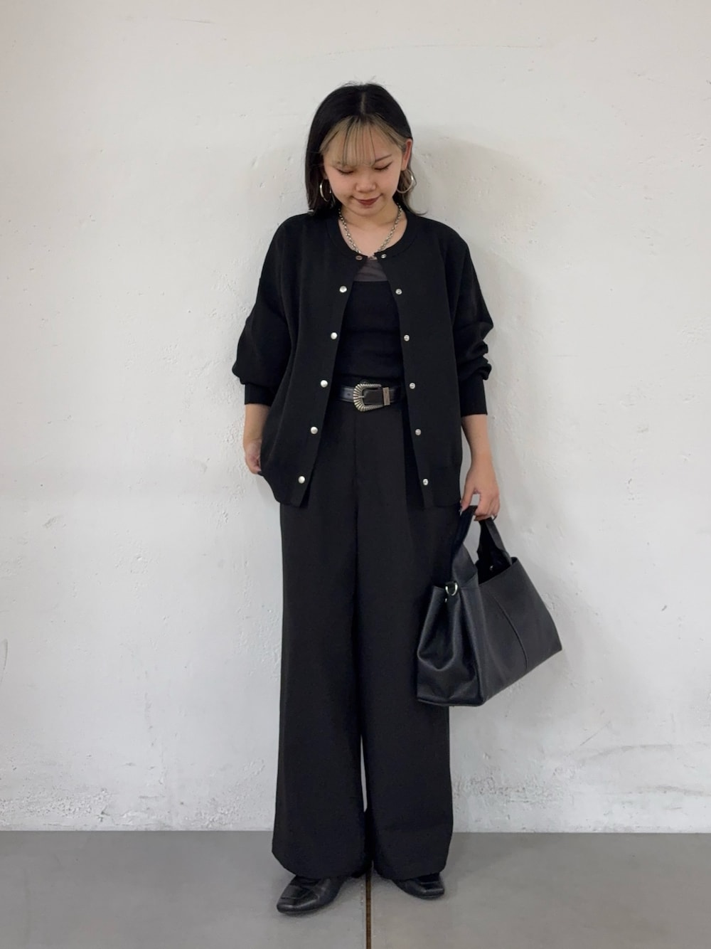【cardigan】着用サイズ:FREE 毛玉やしわになりにくいエステルヤーン素材でお洗濯も楽ちん◎ デイリーでもオフィスシーンでもお使いいただけます✨ 【camisole】着用サイズ:FREE シンプルなアイテムと合わせても着映えするレイヤード風のカップ付きキャミ♡ 【bottom】着用サイズ:PXS 147cmで裾上げも厚底も不要な脚長見えスラックスです🖤 Sサイズに比べて大幅な股下カットと腰回りを小さくしてもらいました! シワになりくくハリのある素材なのでオールシーズン履き回せちゃいます✨ 【bag】着用サイズ:FREE サイドのスナップでシルエットを変えられます◎マチはしっかりしているため見た目以上の収容力◎ ハンドでもショルダーでもお好みでお使いいただけます✨