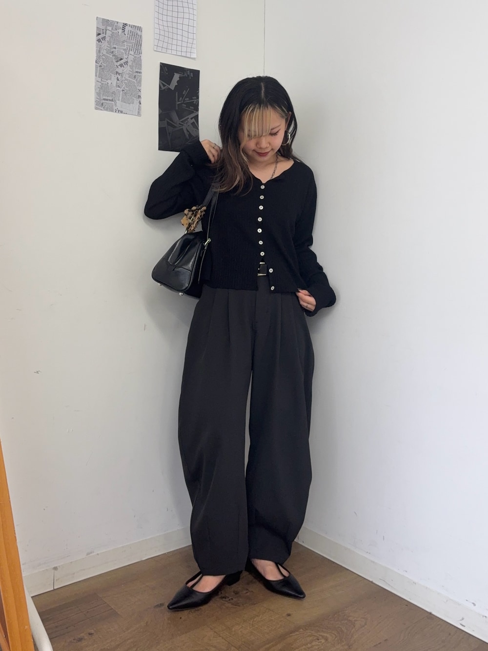 コーデをご覧いただきありがとうございます☺︎ カーブスラックスはカジュアル系だけでなくキレイめにももちろん相性抜群です♡ 短丈やデコルテが見えるデザインのトップスと合わせると全体的にメリハリ出てバランス良くまとまります◎ 【tops】着用サイズ:FREE 【bottom】着用サイズ:PXS 【bag】着用サイズ:FREE