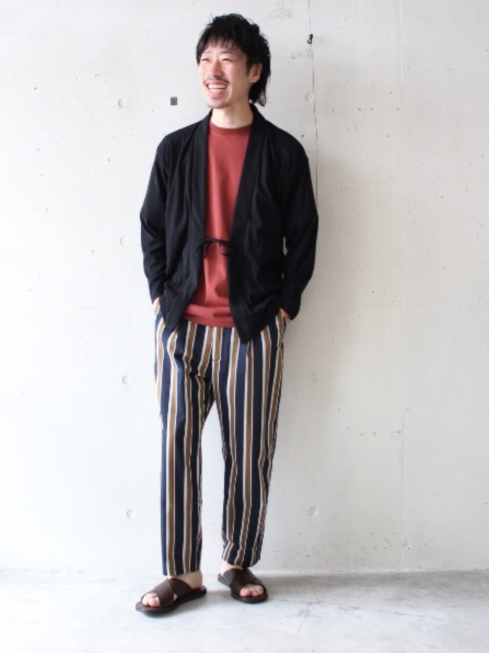 ジメジメしてるので 羽織物が欠かせない! LaBarba 島国カーディガン SLICK ビッグTee LaBarba 日向パンツ インポート レザーサンダル