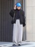ネイビーのタートルネックで色を拾いつつ、ラフ感をイメージしてスタイリングを組んでみました🚶♂️➡️ スウェットパンツやヘッドホン、キャップなどカジュアルアイテムを多めに使ったので、足元はブーツを合わせてバランスを取りました◎