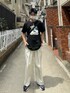 Tシャツとホワイトデニムのシンプルコーデ デニムは大きく入ったタックとカットオフになっている裾がお気に入りポイント🌟 Tシャツは一目惚れで購入💸 刺繍のアイテムには惹かれがち👾