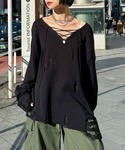 シミ(PAGEBOY梅田HEPFIVE店)のニット/セーター「レースUPユルダメージニット」を使ったコーディネート
