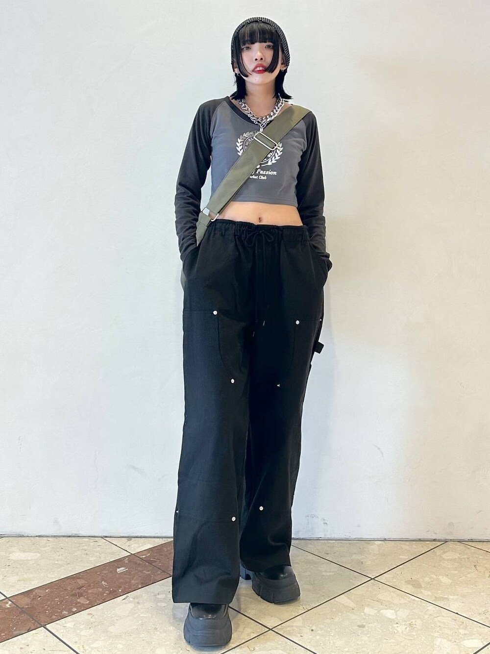 PBLIMパンツ⛓️ 本日はPBLIMの新作パンツを使ってストリートコーデです!🖤 太めのダボダボデザインがどタイプでトップスはピッタラグランロンTを合わせてバランスを取っています!丈感長めなのも高身長さんには嬉しいポイントですよね🫶🏻 男女兼用なので男性の方も着ていただけます!🚀