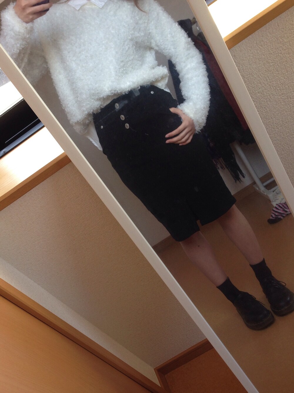 最近白が好きです! もこもこした素材も気になってるので すぐ買いたくなります(笑) マーチンは好きなので 良く履きます(^ ^)