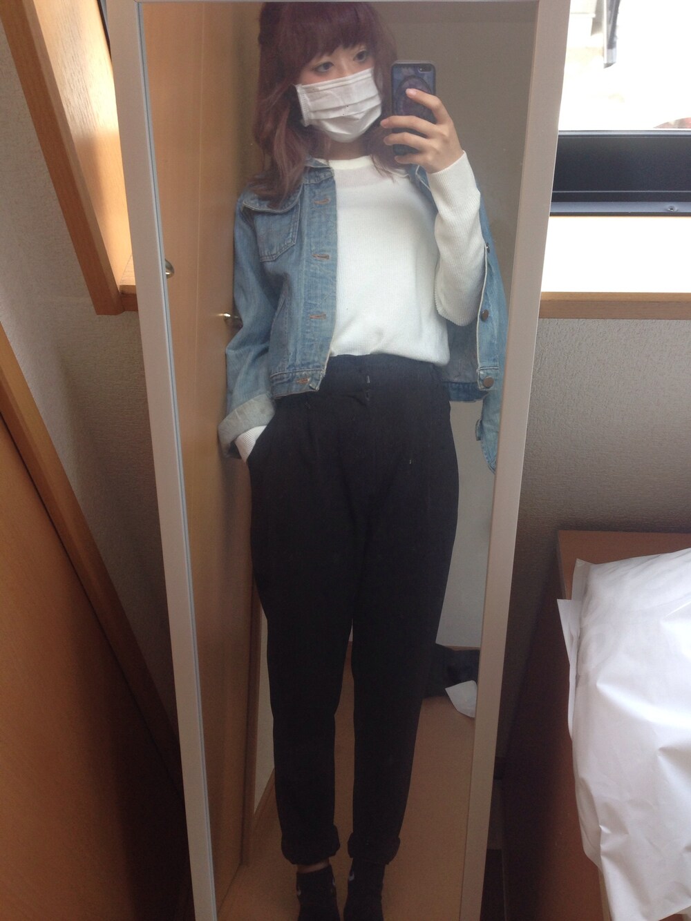 最近同じような色味と、 コーディネートになっていますね... そして、GUばっかりです セーターの胸の辺りにあるフリルが 可愛くて衝動買いしました♪