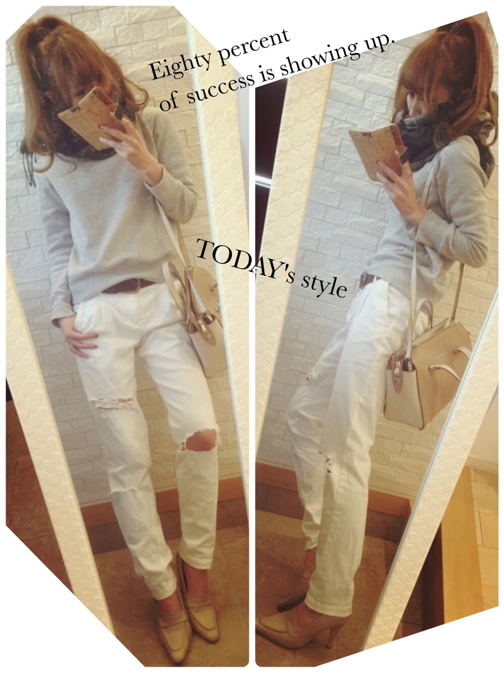 子育て支援センターのため 動きやすさ重視。 パンツは自分でダメージしてあります。