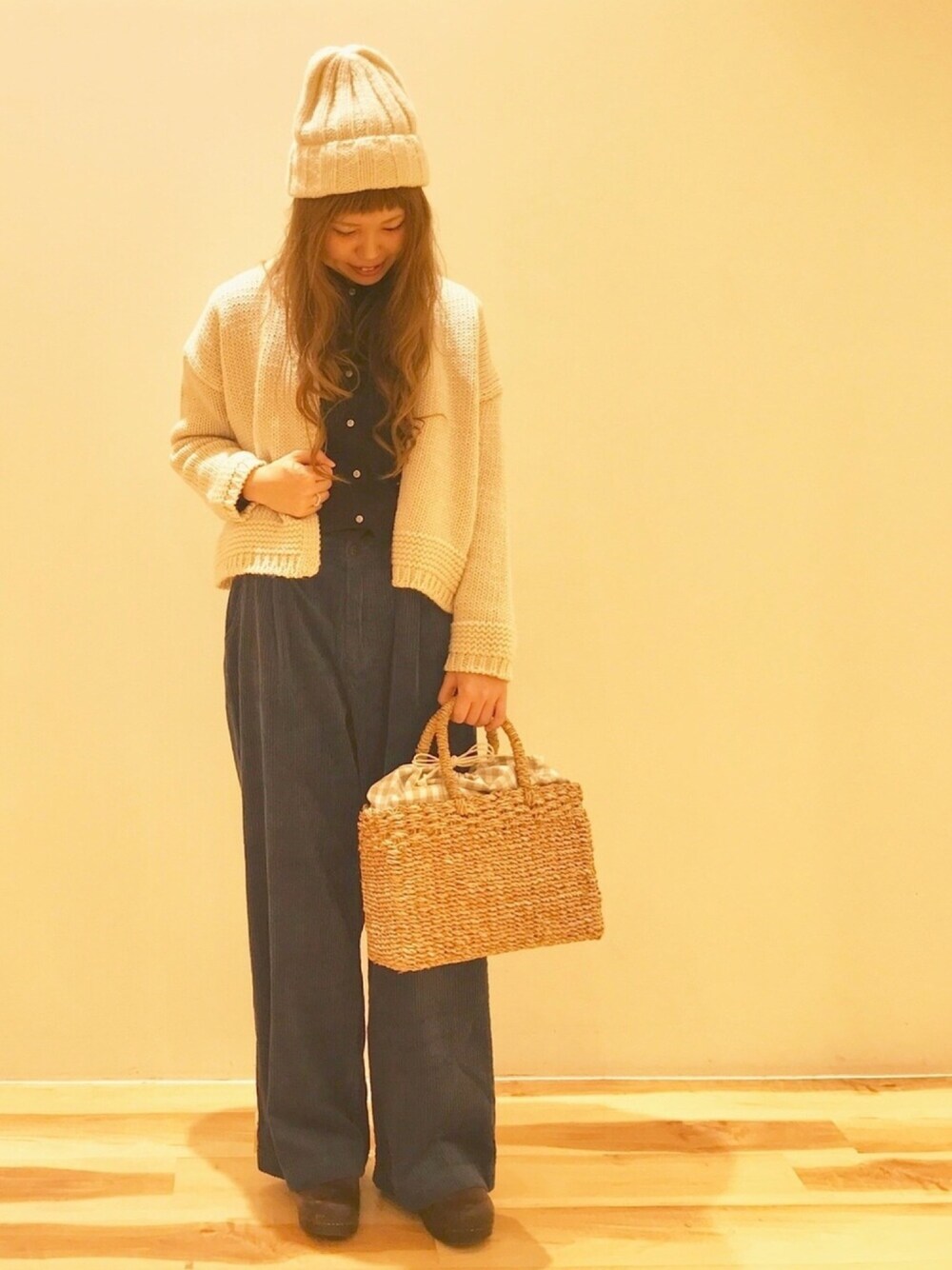 ショート丈のニットカーディガンは、バランスが取りやすく、ボトムスを選ばないのでいろんなスタイルを楽しめてオススメです^ ^ トップスは10/20発売のリンネル12月号掲載のブラウスを♬