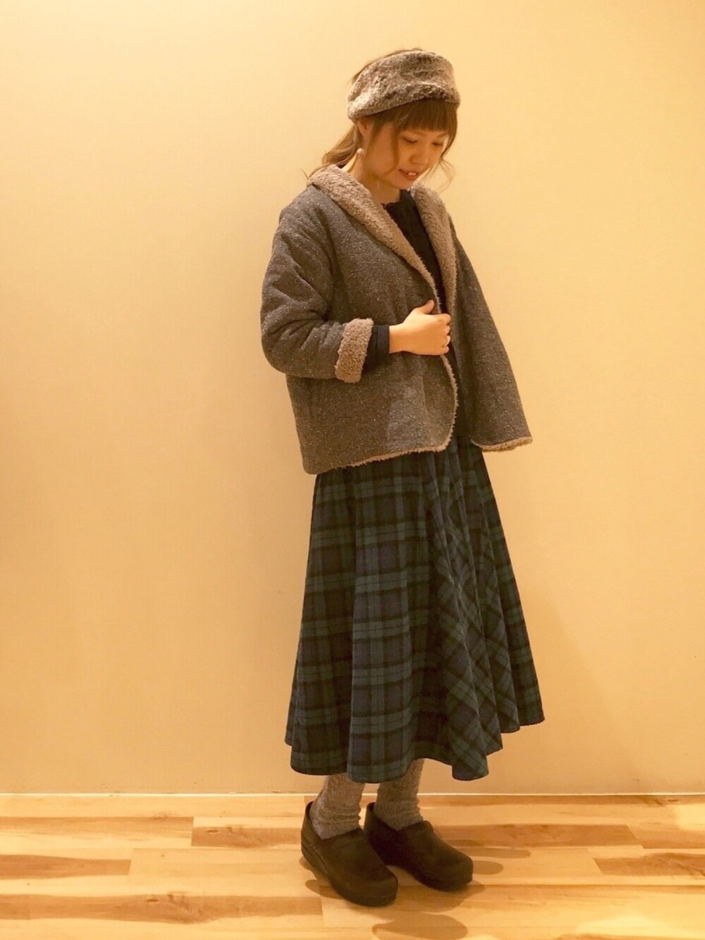 内側がふわふわのボアになっているショート丈コート。 とても軽くてオススメです。 ショート丈は車に乗るときもジャマにならなくて良いですね◎ 3色展開ですが、こちらのカラーのみボアがほんのりグレーがかった色で、残り2色は白のボアです。 スカートは腰回りにボリュームが出にくく裾がひらりとしたデザインで、いつものナチュラルコーデを少し上品に見せてくれます。