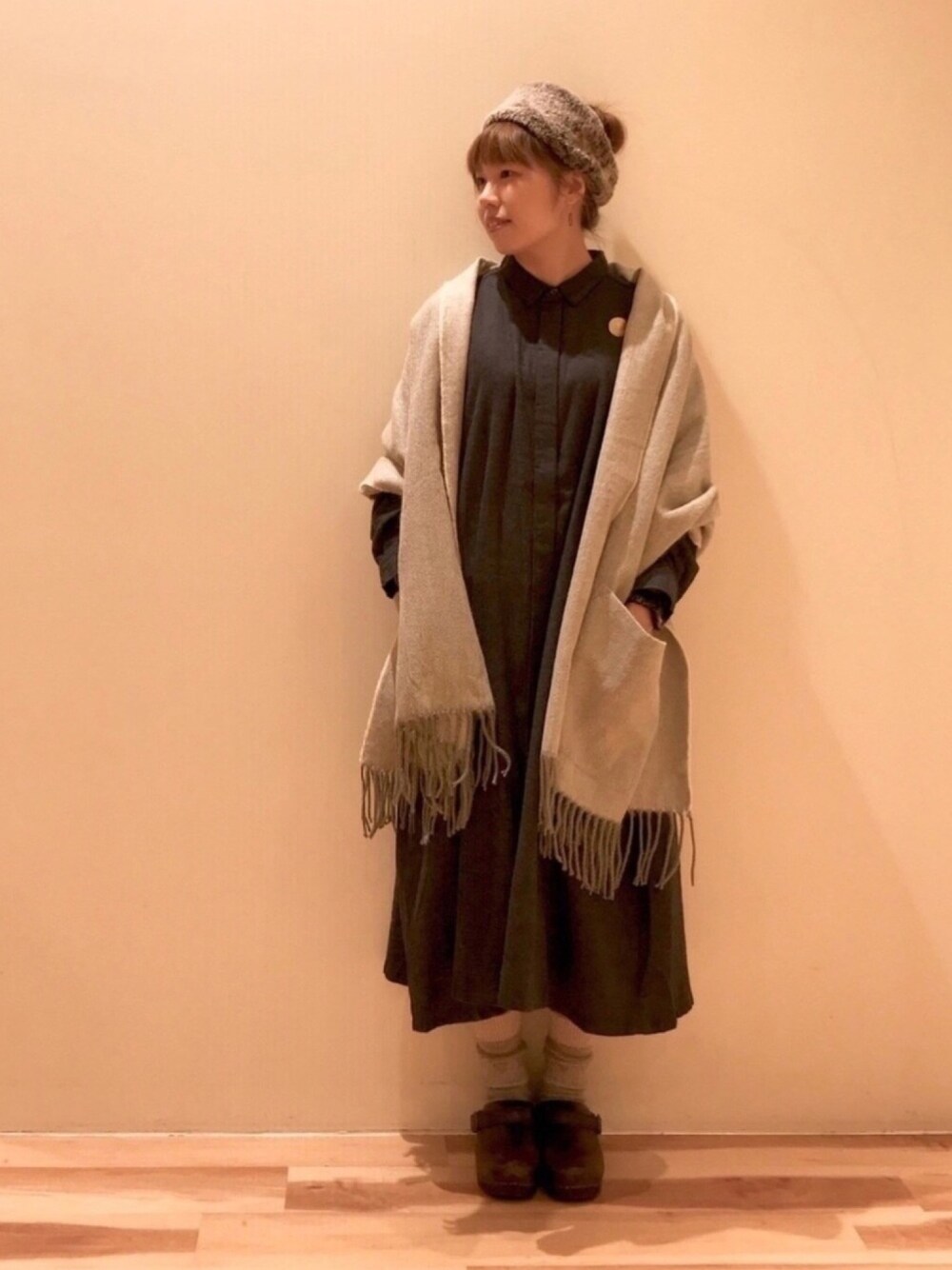 akane のストール/ショール「ポケット付ヘリンボーンストール」を使ったコーディネート