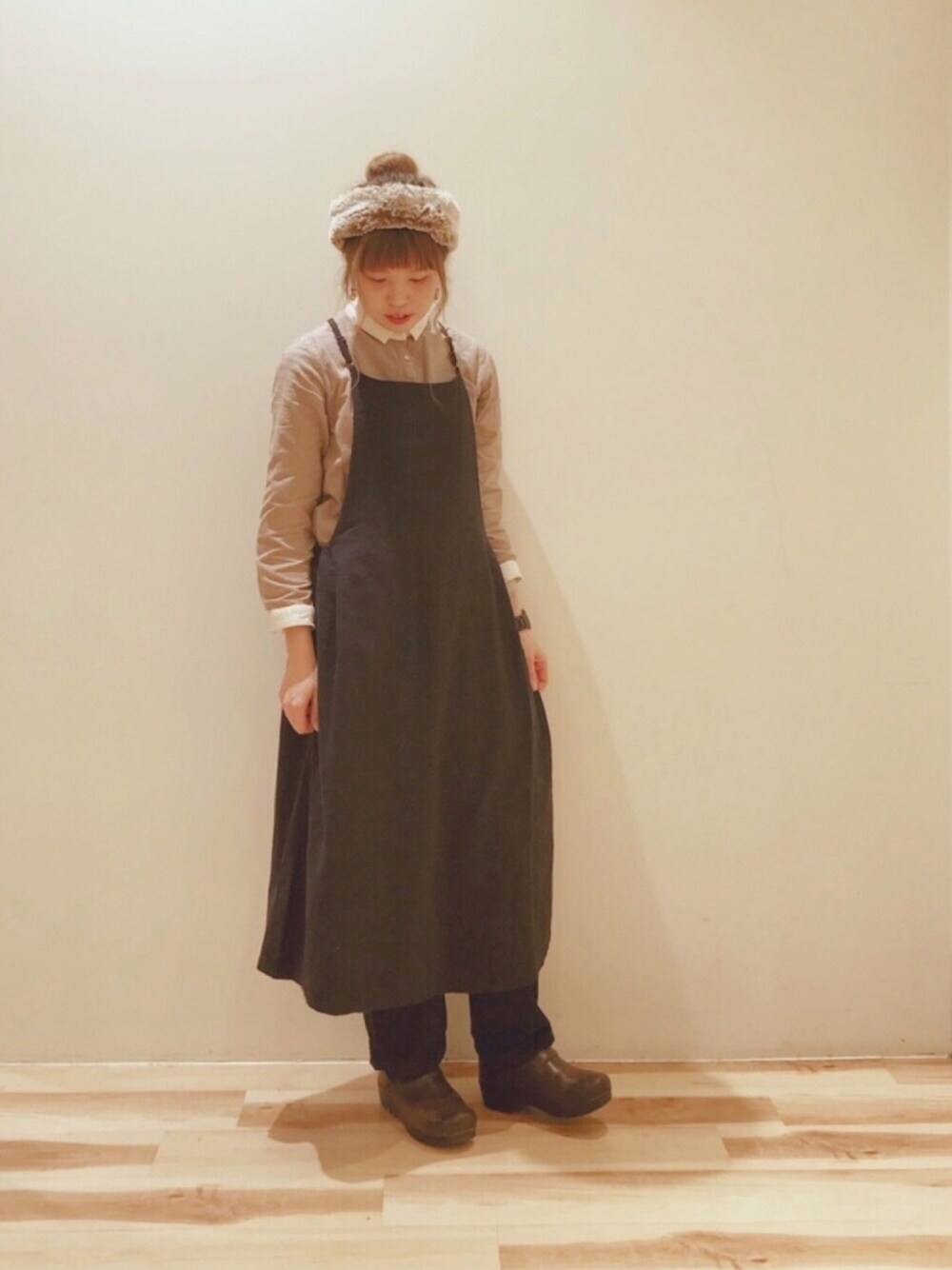 新作のエプロンワンピースを、シャツとパンツの上から、本当にエプロンっぽく着てみました(´ω`) アイテム詳細は後日ZOZOTOWNに商品掲載され次第更新します。→更新しました。