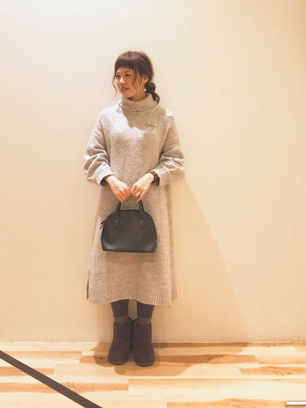 とにかくあったかい服が着たい!というときにオススメのニットワンピース。 厚地の上下で探すとどうしてもトップスの裾とウエストの重なる部分がモコモコとしがちですが、ワンピースなら着膨れしにくいので、アウターも着やすいです。 さりげない首まわりと袖口のデザインがお気に入りです。