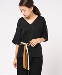 柄ベルトがセットになったゆったりカットソー◡̈* 秋はカーキ×黒の組み合わせがお気に入りです♡ デコルテラインがきれいに見えるトップスなので、手首、足首見せで女子力あげてます!笑