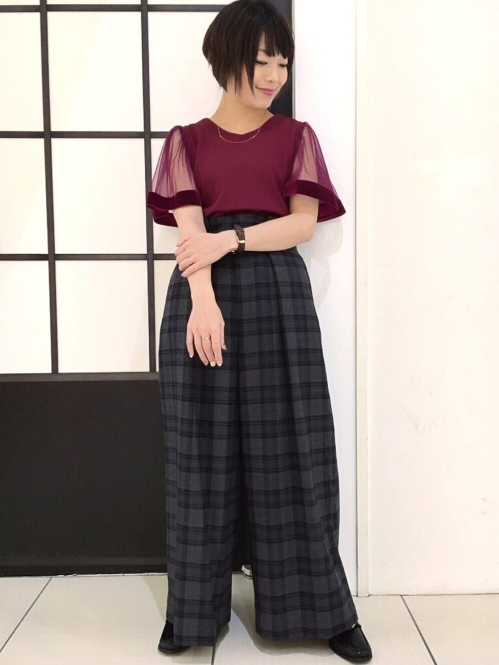 Chisa(PAGEBOY長崎アミュプラザ店)のその他パンツ「【再入荷】チェックワイドパンツ」を使ったコーディネート