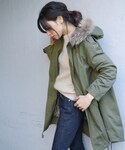 カジュアルスタイルの定番、ルーズシルエットのモッズコートをキレイめに合わせてみました! このシルエットだからこそすっきりしたタイトスカートが引き立つコーディネートです◡̈* モノトーンとカーキで大人カジュアルスタイルです♪