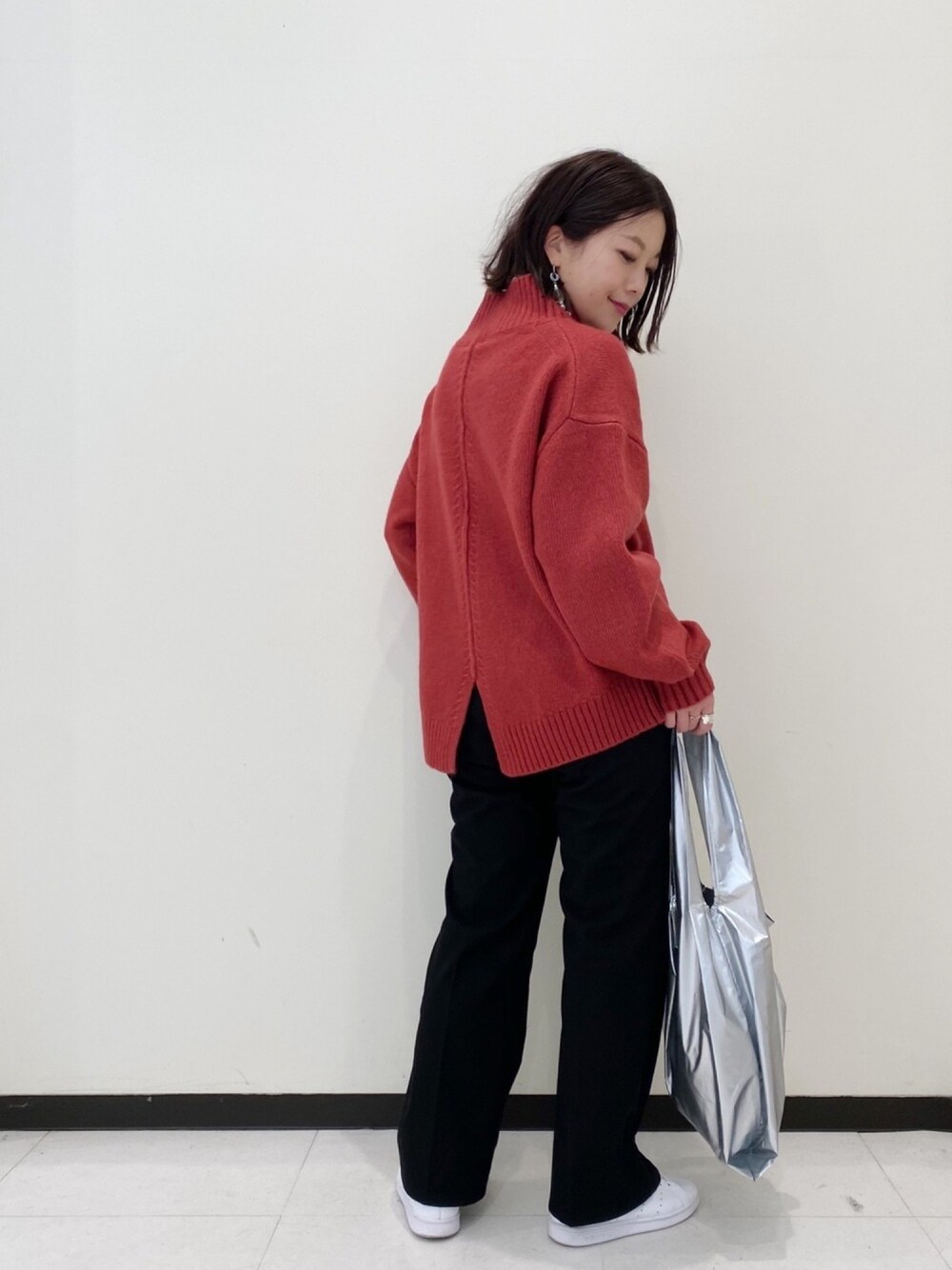 寒い日が続くのでウール混のニットと厚手のスラックスで暖かコーデです。 カラーニットとフレアパンツの合わせならカジュアルになり過ぎずにスニーカーコーデが楽しめます👟