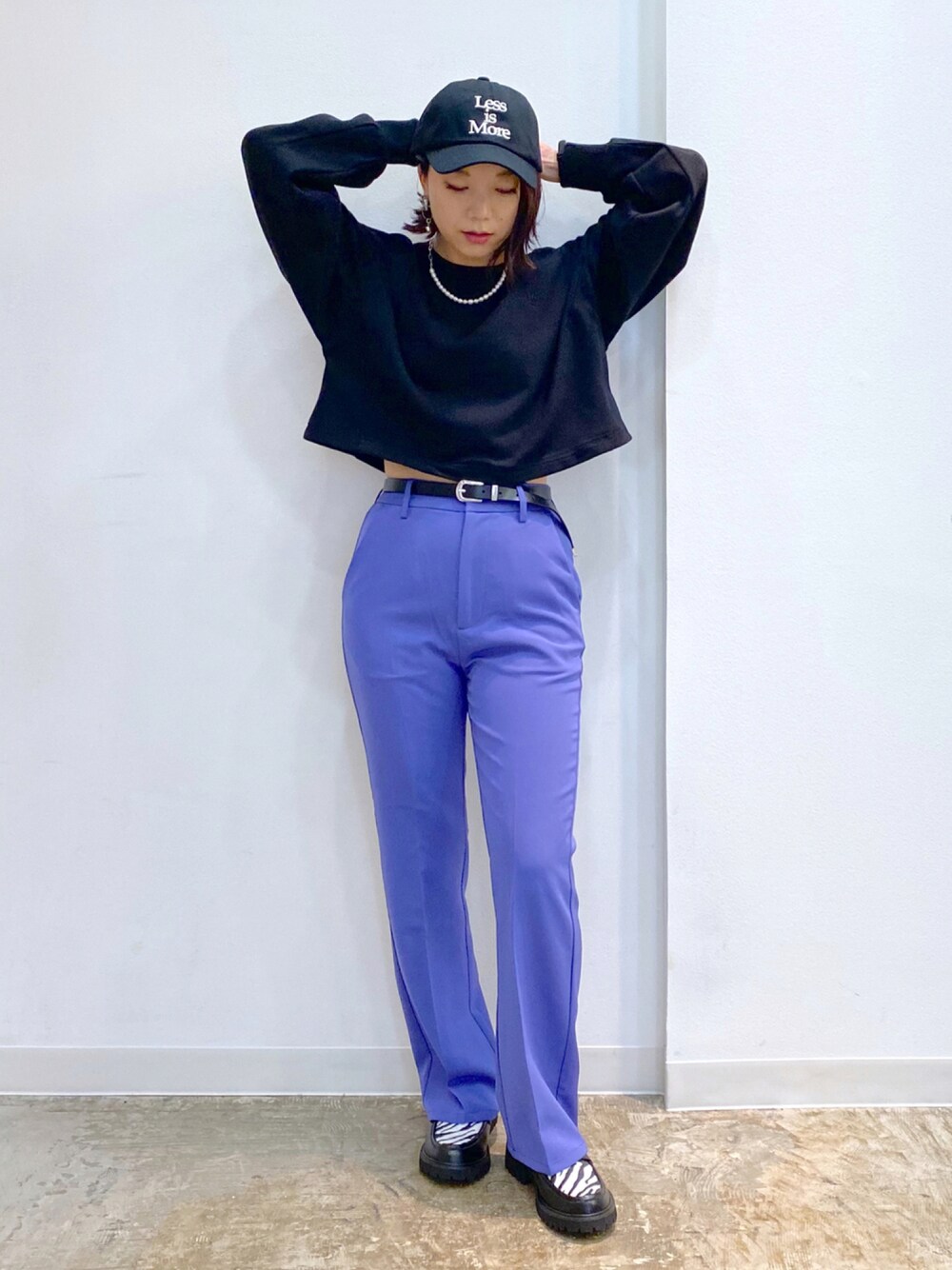 たまに全身LIMでストリートに着たくなりました◡̈* ブラック×パープルは大人カジュアル見えしますね ずっと人気なカラーパンツもトレンドのショート丈で一気に新鮮に STAFF BOARD▶︎Chisa