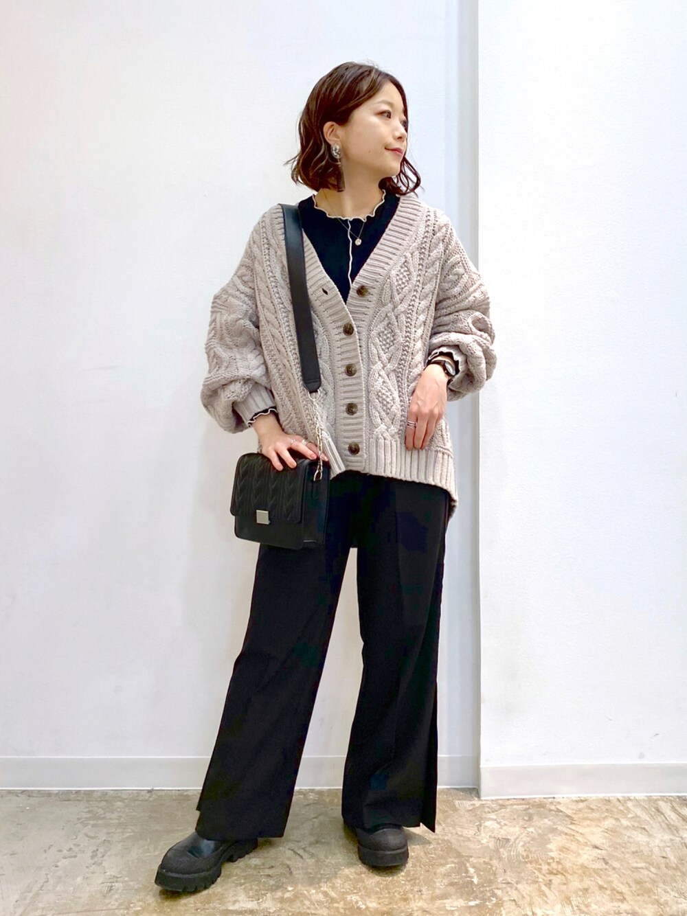 秋らしいざっくりケーブル編みのカーディガンは袖にボリュームがあっても見頃がすっきり着られるベストバランスなサイズ感です♪ ウール混なので冬まで暖かく着られそうです STAFF BOARD▶︎Chisa *低身長に感じさせないきれいめ、大人カジュアルなスタイルが得意なので、お好きな方ぜひフォローお願いします◡̈*