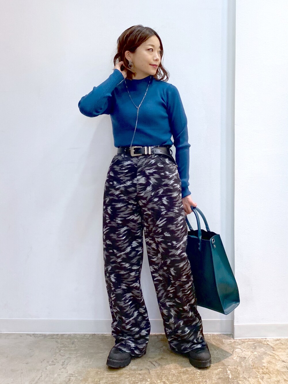 この柄に完全に一目惚れです♡ 私は腰が張ってるのでワイドパンツにはこういうすっきりしたトップスを合わせるのが好きです STAFF BOARD▶︎Chisa *低身長なりの大人カジュアルなスタイルリングをしています。毎日更新しているのでぜひフォローお願いします◡̈*