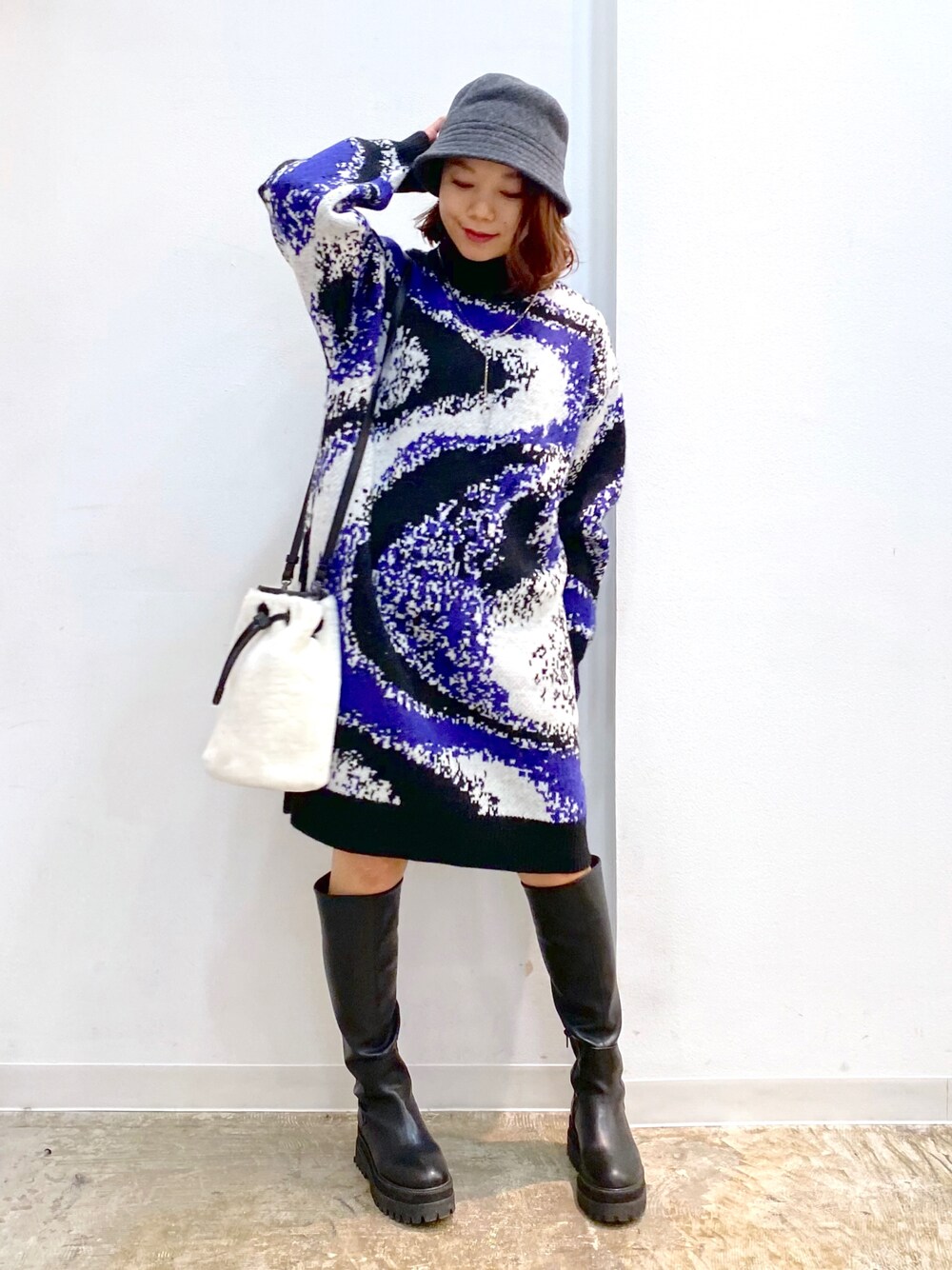 一枚でモードに着られるニットワンピース 美脚ビガーロングブーツと合わせると足が見える部分が少なく挑戦しやすいミニ丈 STAFF BOARD▶︎Chisa *アラフォー低身長なりの大人カジュアルスタイルを楽しんで毎日更新しています!ぜひフォローお願いします◡̈*