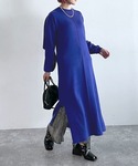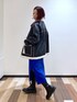 きれいなブルーのニットワンピースをレザーのアウターとブーツで合わせたモードなコーディネート PAGEBOYのB-3はお尻までしっかり隠れるので、冬のお出かけも暖かく過ごせます♪ STAFF BOARD▶︎Chisa *アラフォー低身長なりの大人カジュアルスタイルを楽しんで毎日更新しています!ぜひフォローお願いします◡̈*