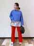 長崎のスタッフに選んでもらったコーディネートシリーズ♡ 淡めのブルーにビタミンカラーのトマト🍅のカラーパンツを合わせた配色コーディネート ストライプシャツのレイヤードで今年の春らしさ満載です カットソーのようにしなやかなニットトップスなのでボリューム袖でもごわつかずに着られます STAFF BOARD▶︎Chisa *アラフォー低身長なりの大人カジュアルスタイルを楽しんで毎日更新しています!ぜひフォローお願いします◡̈*