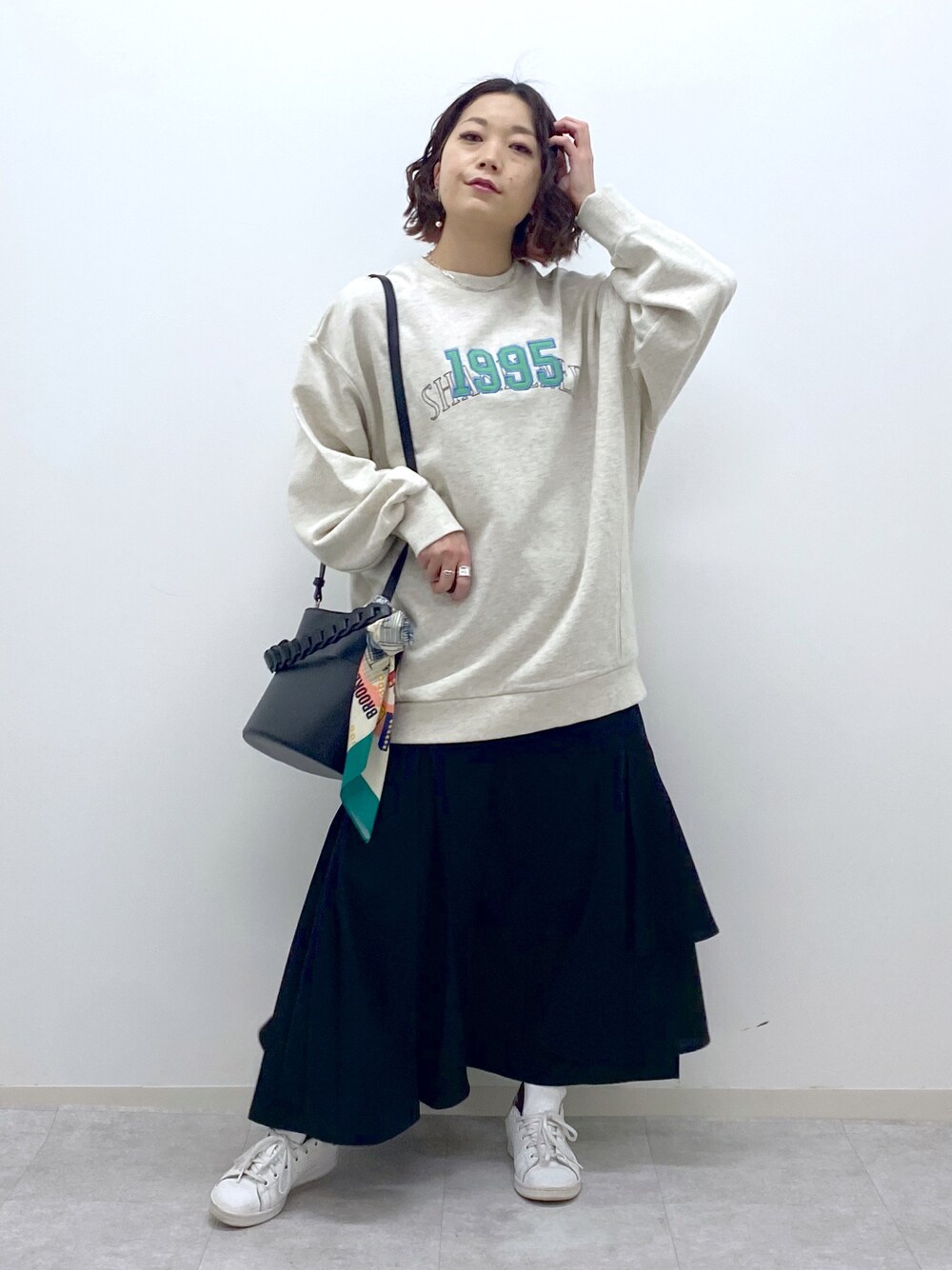 トレンドのカレッジロゴのスウェットで春らしいスカートスタイル カジュアルコーディネートだからこそデザインのあるスカートが映えます スカートの揺れ感がかわいくて思わずくるくる回りたくなるので是非お楽しみくださいね♪ STAFF BOARD▶︎Chisa *アラフォー低身長なりの大人カジュアルスタイルを楽しんで毎日更新しています!ぜひフォローお願いします◡̈*
