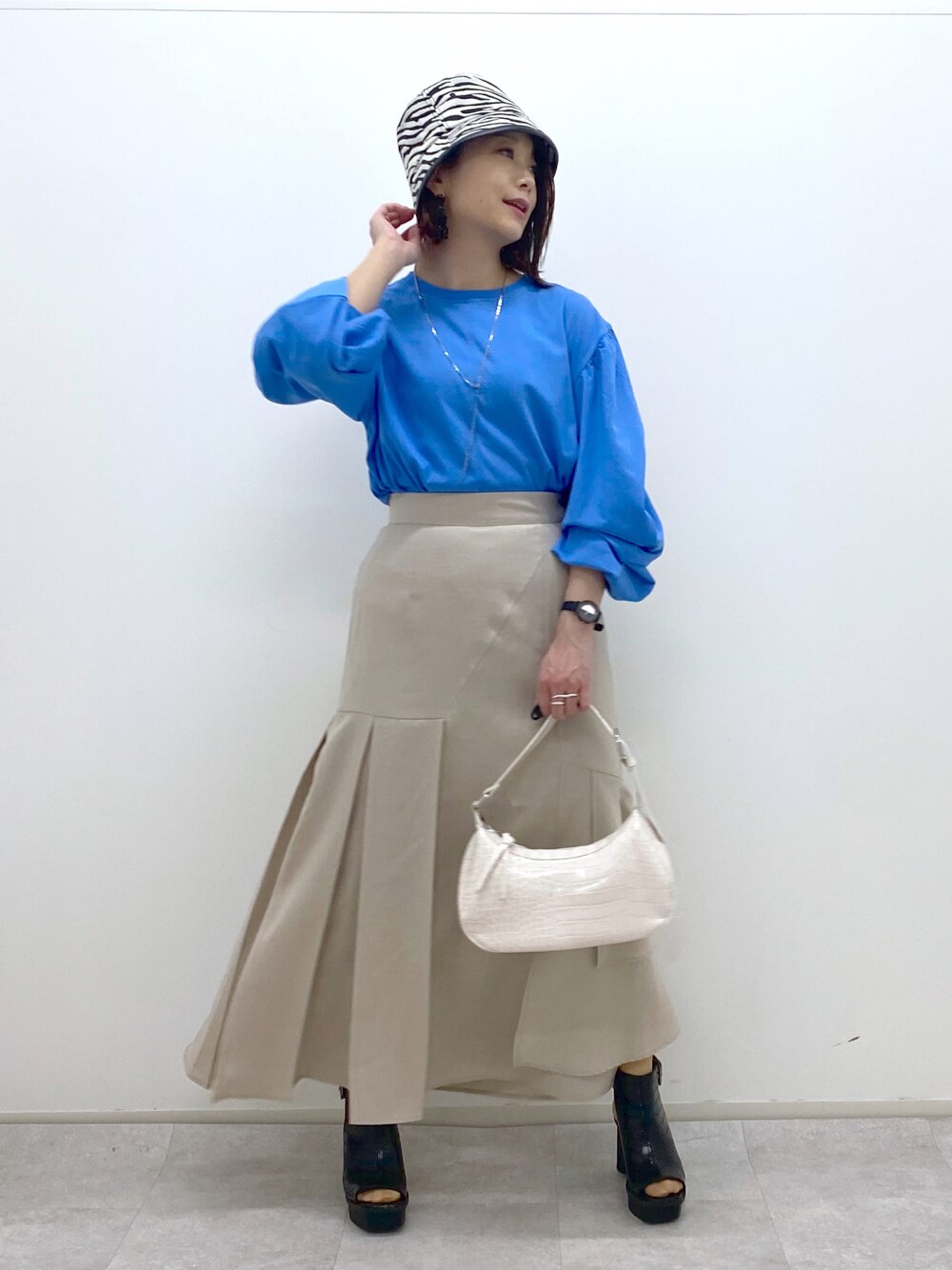 大大大人気のアシメティアードスカート これから夏に向けて見た目にも涼しげなベージュとブルーのこんな合わせもおすすめです 淡色コーディネートで着る時はシューズや帽子で黒や柄で締めるのか好きです STAFF BOARD▶︎Chisa *アラフォー低身長なりの大人カジュアルスタイルを楽しんで毎日更新しています!ぜひフォローお願いします◡̈*