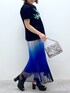 グラデーションが目を惹く涼しげなスカートに遊び感あるロゴTシャツでお出かけコーディネート Tシャツはひじまでの長さのなのでロールアップで着ていただくのもおすすめです♪ STAFF BOARD▶︎Chisa *アラフォー低身長なりの大人カジュアルスタイルを楽しんで毎日更新しています!ぜひフォローお願いします◡̈*