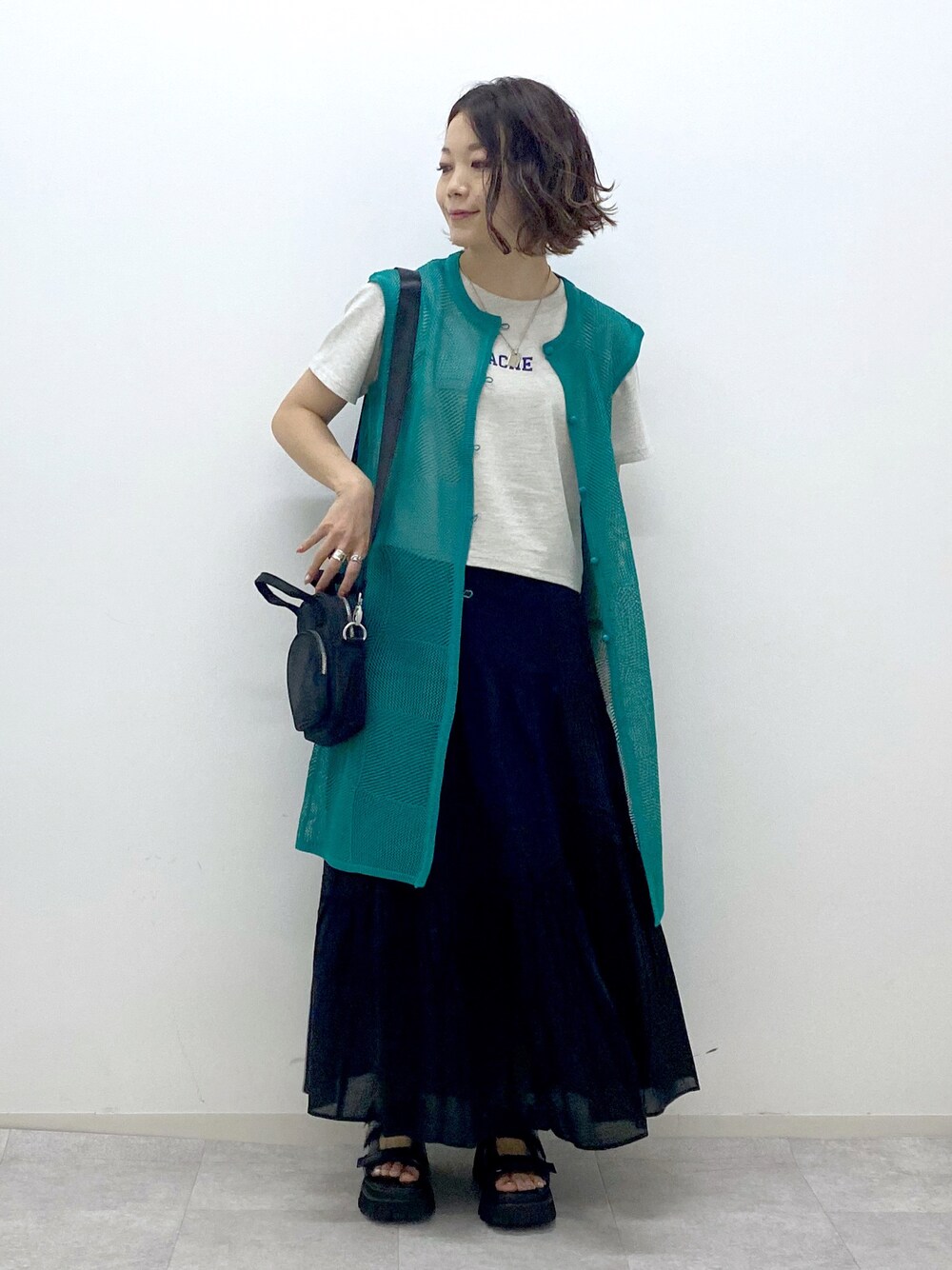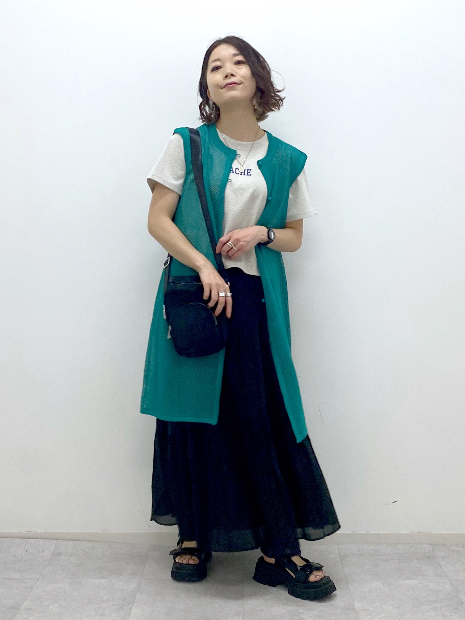夏らしいコットン素材のスカートは薄手でごわつかずに履けます Tシャツだけだとちょっとカジュアル過ぎるかな?という時に便利なメッシュのベスト シルエットが抑えられて大人見えなスカートスタイルに STAFF BOARD▶︎Chisa *アラフォー低身長なりの大人カジュアルスタイルを楽しんで毎日更新しています!ぜひフォローお願いします◡̈*