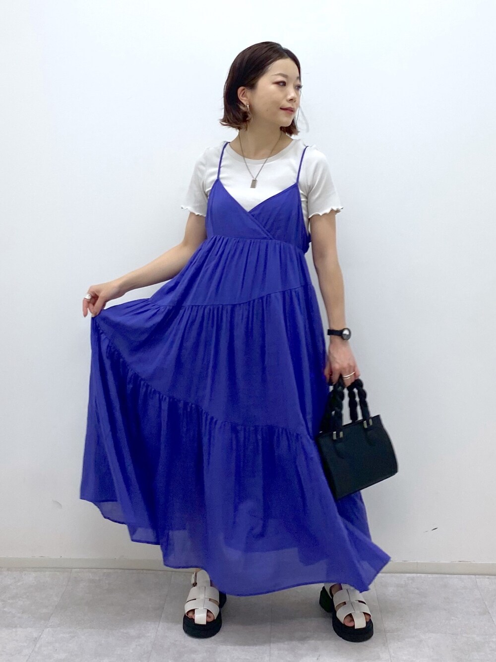 Chisa(PAGEBOY長崎アミュプラザ店)のワンピース/ドレス「コットンボイルティアードキャミワンピース」を使ったコーディネート