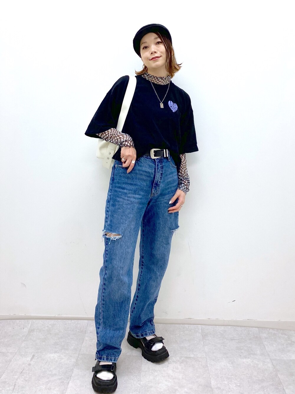 Chisa(PAGEBOY長崎アミュプラザ店)のデニムパンツ「クラシックストレート」を使ったコーディネート
