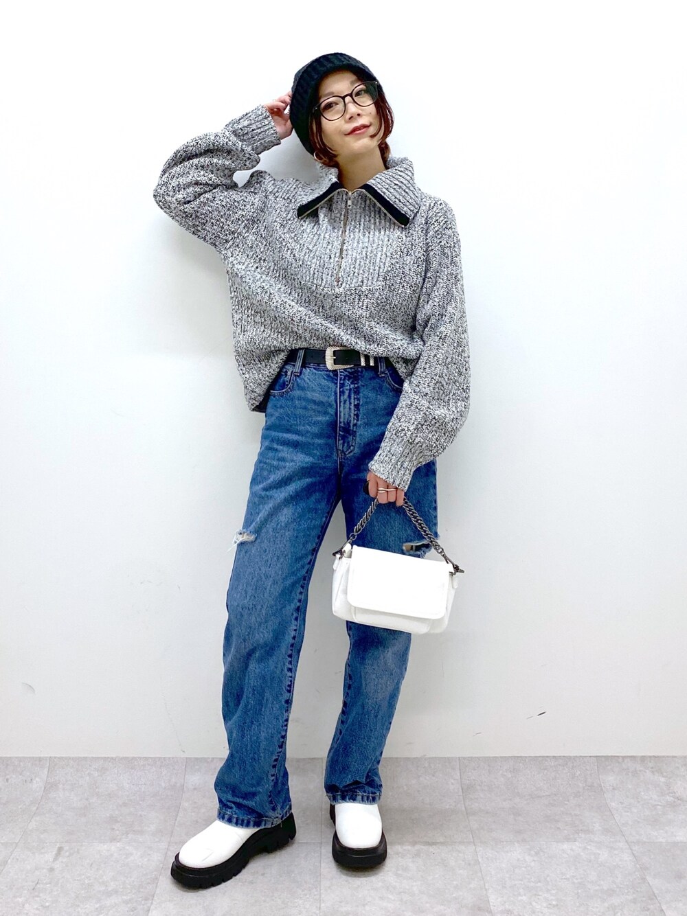 トレンドハーフジップのニットのリアルバイコーディネートです♡ 大きめな衿がとデニムのスリットが抜け感ありますね クラシックストレートはウエスト周りに少しゆとりがあるサイズ感なのでニットのインスタイルも楽しめます STAFF BOARD▶︎Chisa *アラフォー低身長なりの大人カジュアルスタイルを楽しんで毎日更新しています!ぜひフォローお願いします◡̈*
