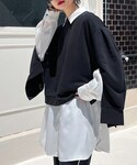 スウェットは部屋着みたいと言わせないコーディネート 重ね着が楽しめるマントスリーブのスウェットは前後差があるのでスカートとのスタイルもバランス◎ 私が好きなモードカジュアルな着こなしにしてみました♪ STAFF BOARD▶︎Chisa *アラフォー低身長なりの大人カジュアルスタイルを楽しんで毎日更新しています!ぜひフォローお願いします◡̈*