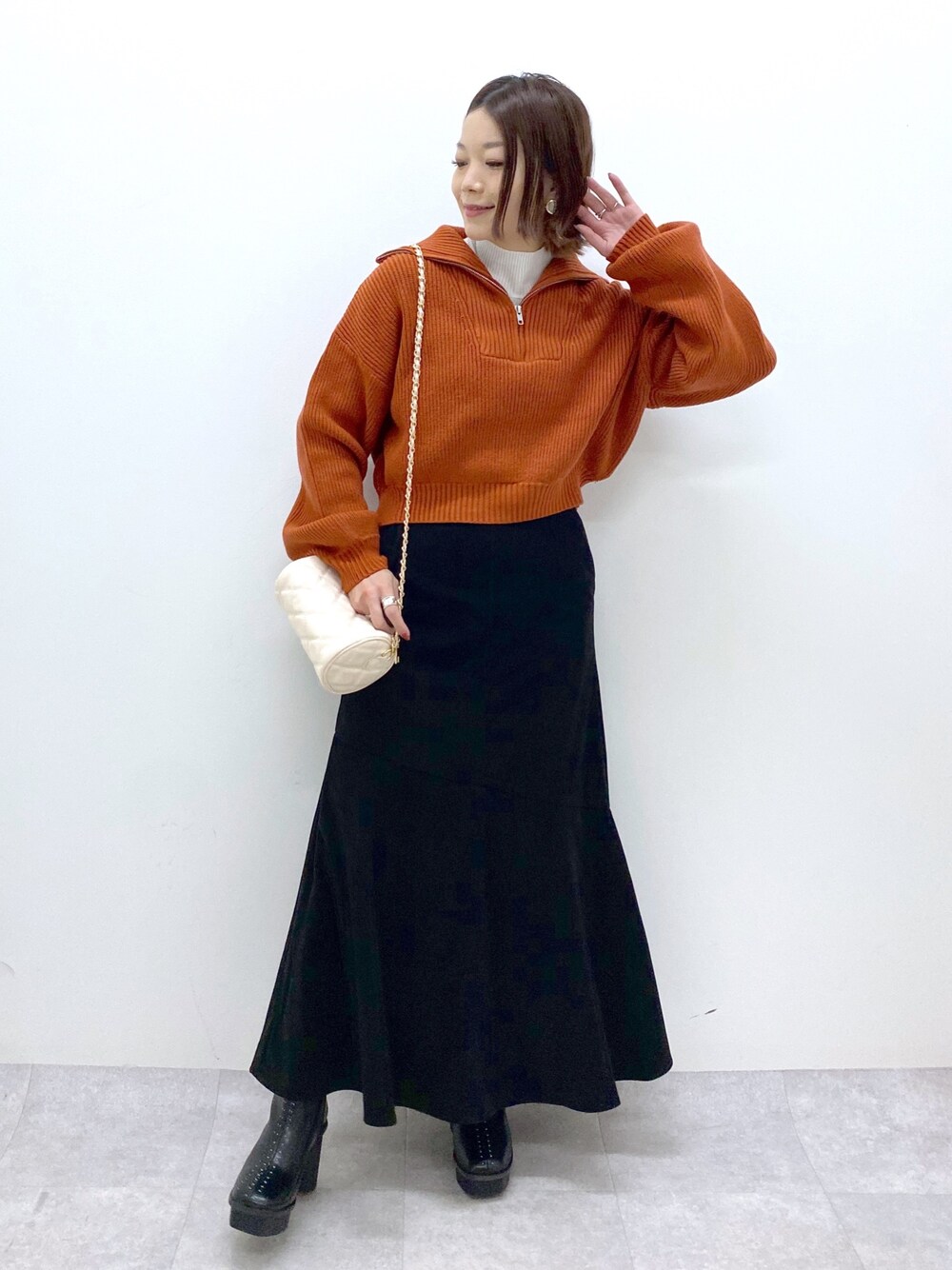 丈感、袖のボリューム感ドストライクなPAGEBOY LIMのハーフジップニットです♡ ウエストがリブでキュッとなっているのでスカートに合わせたいです スカートの細見え具合もありがたいのでおすすめなスタイルですよ♪ STAFF BOARD▶︎Chisa *アラフォー低身長なりの大人カジュアルスタイルを楽しんで毎日更新しています!ぜひフォローお願いします◡̈*