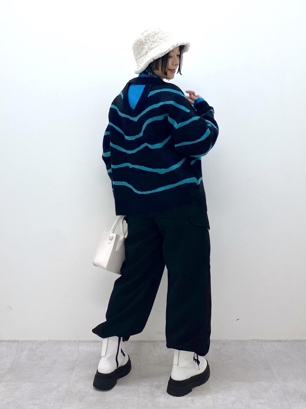 Chisa(PAGEBOY長崎アミュプラザ店)のトップス「バックオープンマーブル柄ニット」を使ったコーディネート