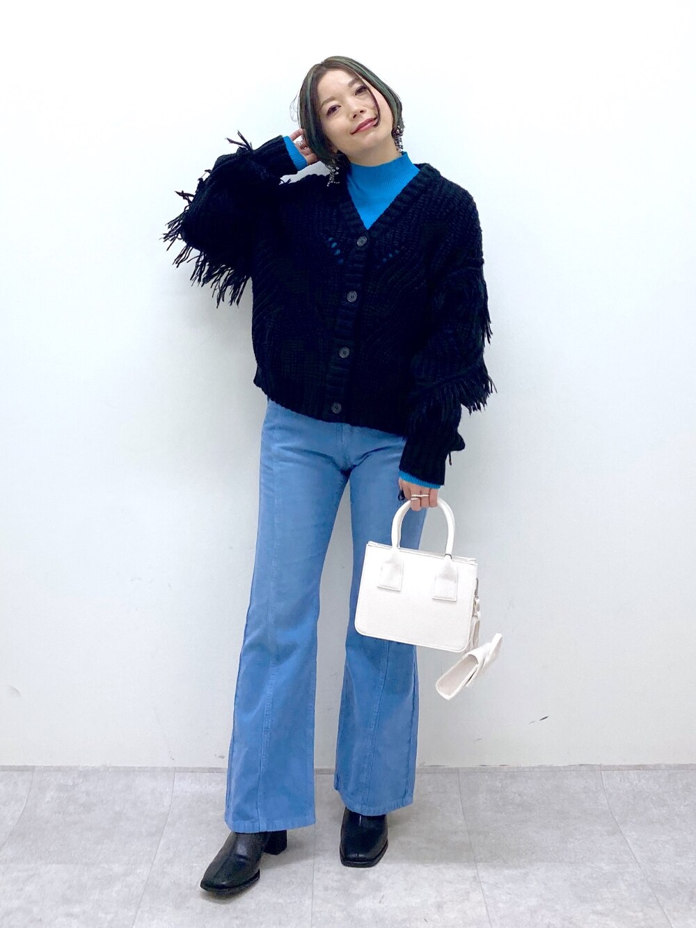 レイヤードが楽しめるフリンジカーディガンがお求めやすくなってます♪ 袖口にボリュームが出るデザインなので肩は華奢見えして合わせるボトムを選ばないシルエットです モードなスタイルの差し色にはブルーがおすすめです STAFF BOARD▶︎Chisa *アラフォー低身長なりの大人カジュアルスタイルを楽しんで毎日更新しています!ぜひフォローお願いします◡̈*
