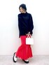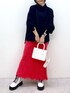 チェリー🍒のカラーが目を惹くコーディネート マーメイドシルエットなので腰丈のニットで合わせるのが骨格ストレートにはベストバランスです◎ ニットは「軽い!」と感動されるお客様が多いので是非ご体感ください♪ STAFF BOARD▶︎Chisa *アラフォー低身長なりの大人カジュアルスタイルを楽しんで毎日更新しています!ぜひフォローお願いします◡̈*