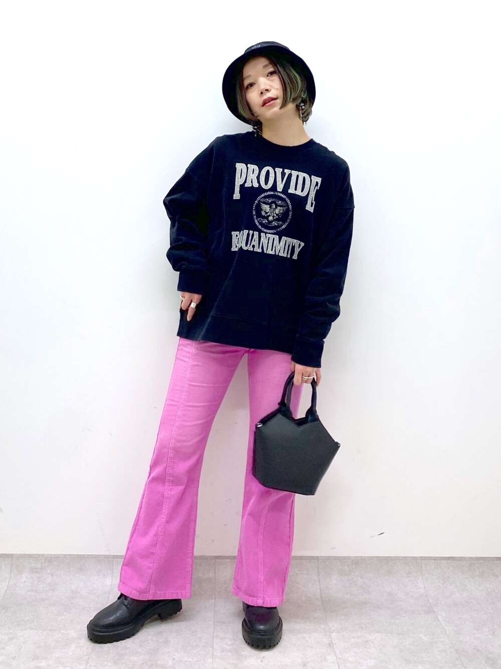 Chisa(PAGEBOY長崎アミュプラザ店)のTシャツ/カットソー「エンブレムロゴ裏毛プルオーバー」を使ったコーディネート