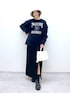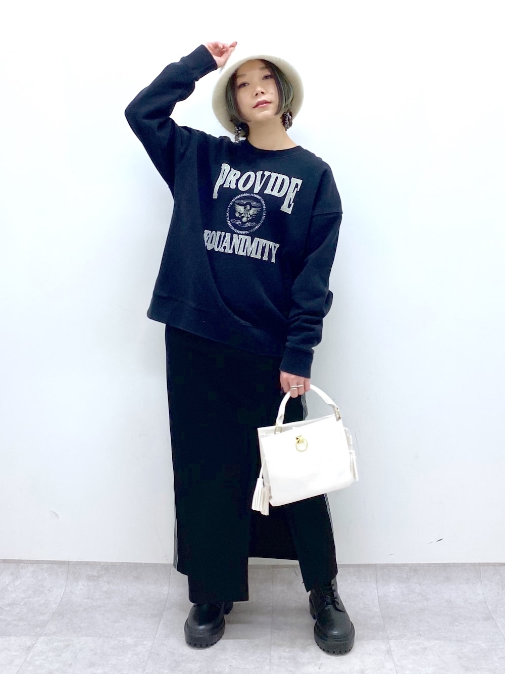 ロゴスウェットとラインスカートのモードカジュアルなコーディネート コンパクトな丈感のスウェットはスカートのシルエットきれいに出せます ジャージ素材の履き心地のいいタイトスカートはブーツのデザインも見せられる深めスリットがポイントです STAFF BOARD▶︎Chisa *アラフォー低身長なりの大人カジュアルスタイルを楽しんで毎日更新しています!ぜひフォローお願いします◡̈*