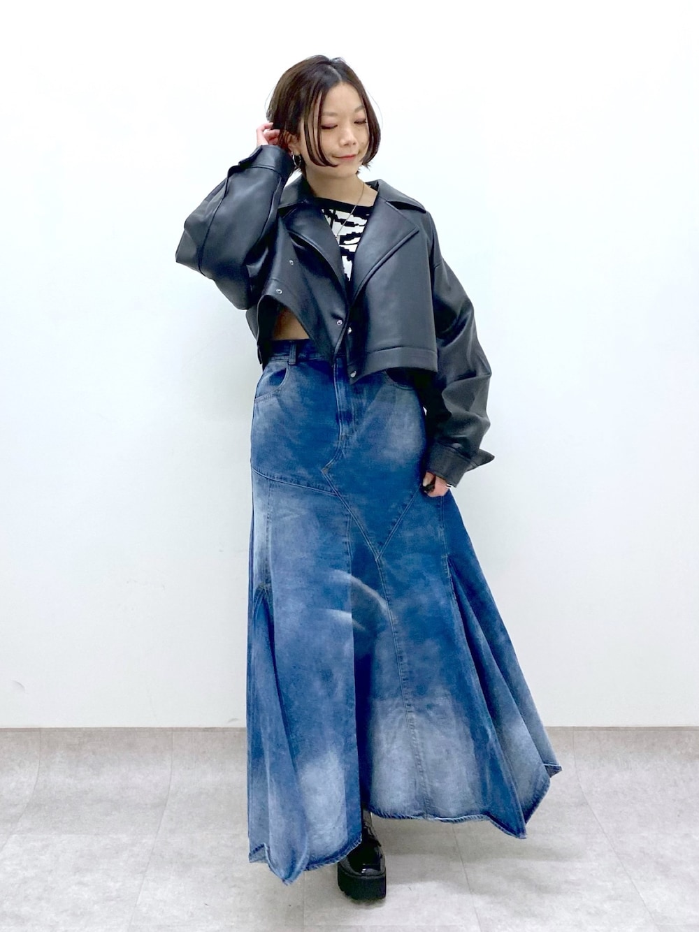 【ご予約受付中】 このシルエットのきれいさと他にはないデザインのデニムスカート せっかくの美シルエットなのでショート丈合わせがおすすめです♡ このルーズ感なシルエットが厳つく見えずにバランス◎です STAFF BOARD▶︎Chisa *アラフォー低身長なりの大人カジュアルスタイルを楽しんで毎日更新しています!ぜひフォローお願いします◡̈*